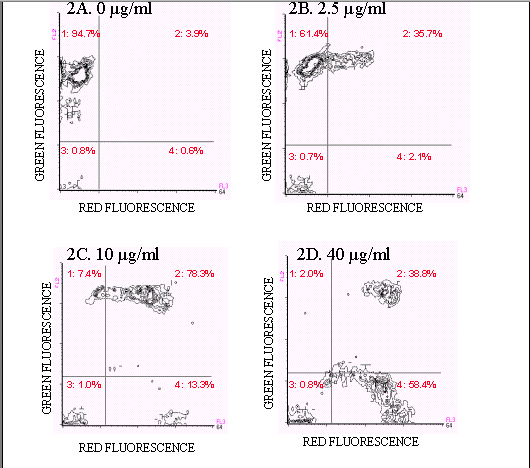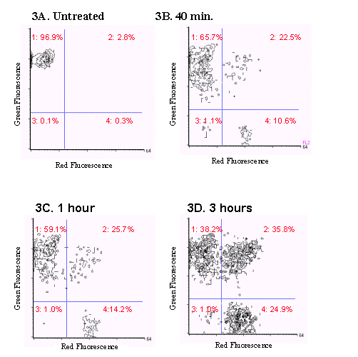 dying cells (quadrants 2, 3, and 4) and a decrease in the number of