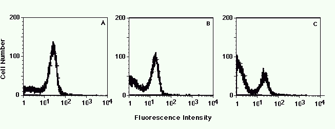 secondary antibody. As also seen in Figures 1 and 2, the fluorescent histogram was asymmetric; the most brightly