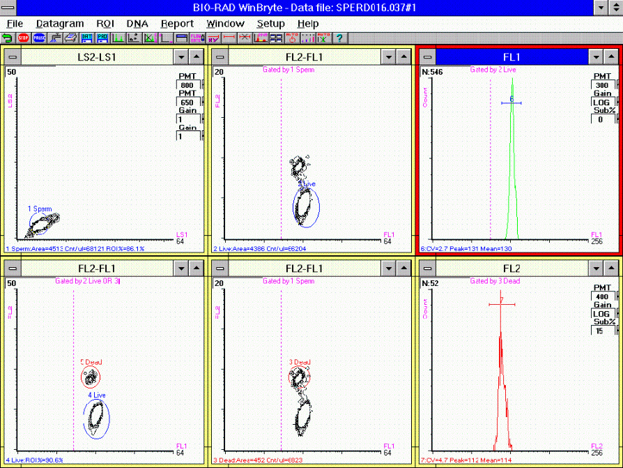 Figure 4: Boar Sperm labeled with Hoechst 33342 + PI