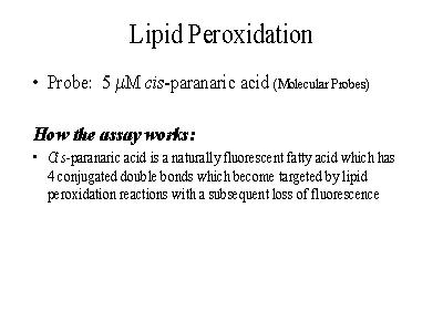 The Paranaric acids are the closest structural analogs of intrinsic membrane lipids among current fluorescent probes. Cis-paranaric acid, a naturally fluorescent fatty acid, loses its fluorescence over time when the four conjugated double bonds of the backbone chain become the target of lipid peroxidation reactions.